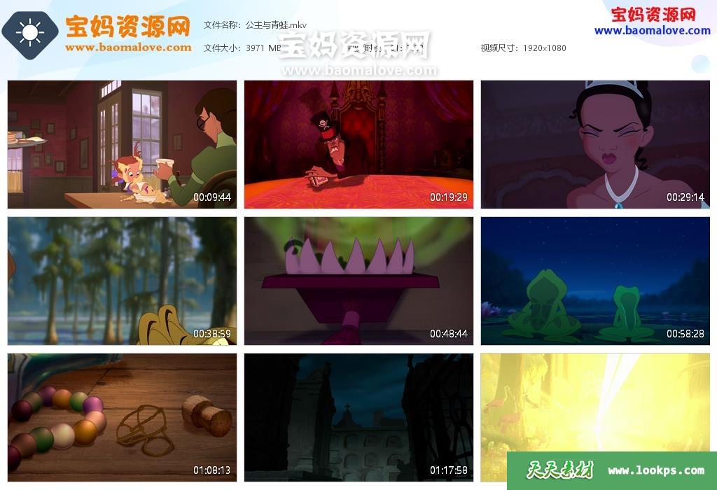 天天资源网收录的动画电影《公主与青蛙 The Princess and the Frog》,国粤台英四语发音,中英文字幕;资源大小约3.87G,1080P高清MKV格式,可以在电视机或电脑、平板、IPAD、早教机、手机等各种设备播放,提供百度云网盘下载。