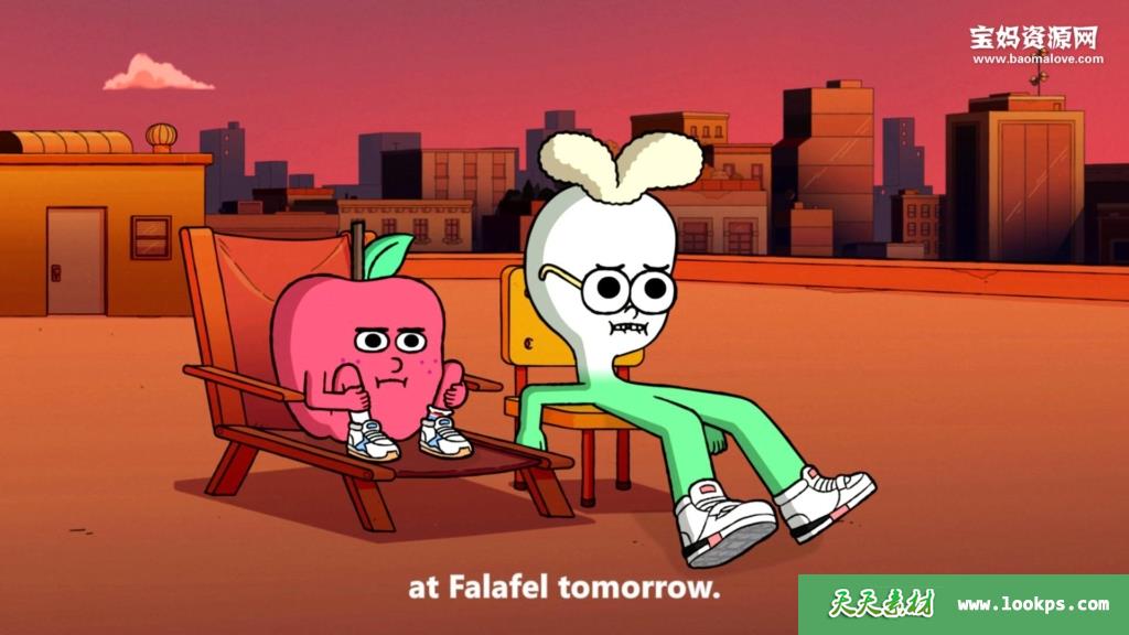 苹果去城市工作,遇到了很多麻烦,然后认识了同来城市工作的洋葱,两人解决了麻烦,成为了室友和朋友,里面所有的人物都是各种各样的食物。