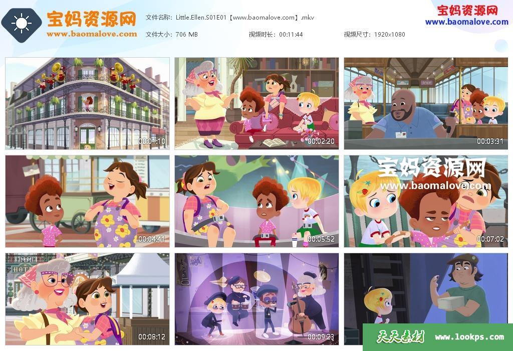 天天资源网收录的动画片《Little Ellen》小艾伦英文版 第一季,全部8集,英语发音,内置英文字幕(可以下载后使用播放器选择设置字幕或者关闭字幕);每集大小约690M,资源总大小5.5G,单集播放时长约12分钟,1080P高清MKV格式,可以在电视机或电脑、平板、IPAD、早教机、手机等各种设备播放,提供百度云网盘下载。