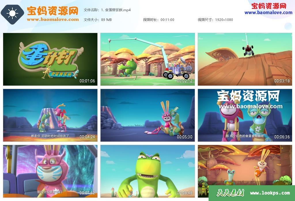 天天资源网收录的动画片《蛋计划之食蛋兽家族》,全部52集,国语发音,中文字幕;每集大小约70M,资源总大小约4.13G,单集播放时长约11分钟,1080P高清MP4格式,可以在电视机或电脑、平板、IPAD、早教机、手机等各种设备播放,提供百度云网盘下载。