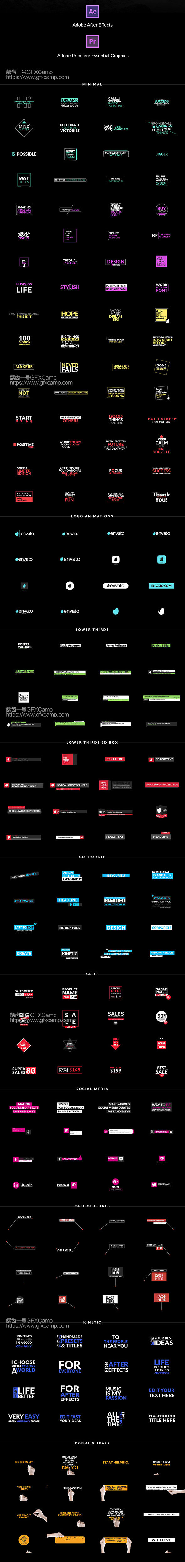 AE的是模板+脚本形式,共500组文字标题动画,PR的是脚本+mogrt预设形式,包含其中300组文字标题动画动画