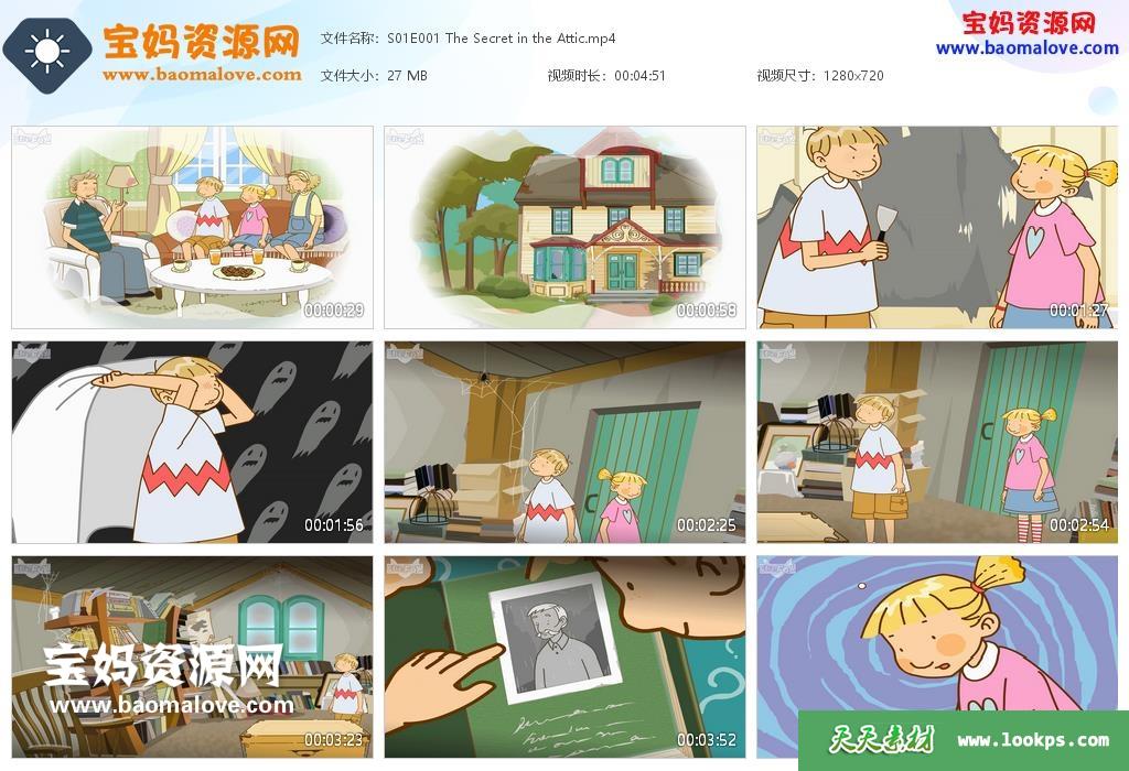 天天资源网收录的动画片《Photo Travels》奇幻照片之旅英文版,全部128集,英语发音,外挂英文字幕(可下载后使用播放器选择设置字幕或者关闭字幕);每集大小约27M,资源总大小4.1G,单集播放时长约4~5分钟,720P高清MP4格式,可以在电视机或电脑、平板、IPAD、早教机、手机等各种设备播放,提供百度云网盘下载。