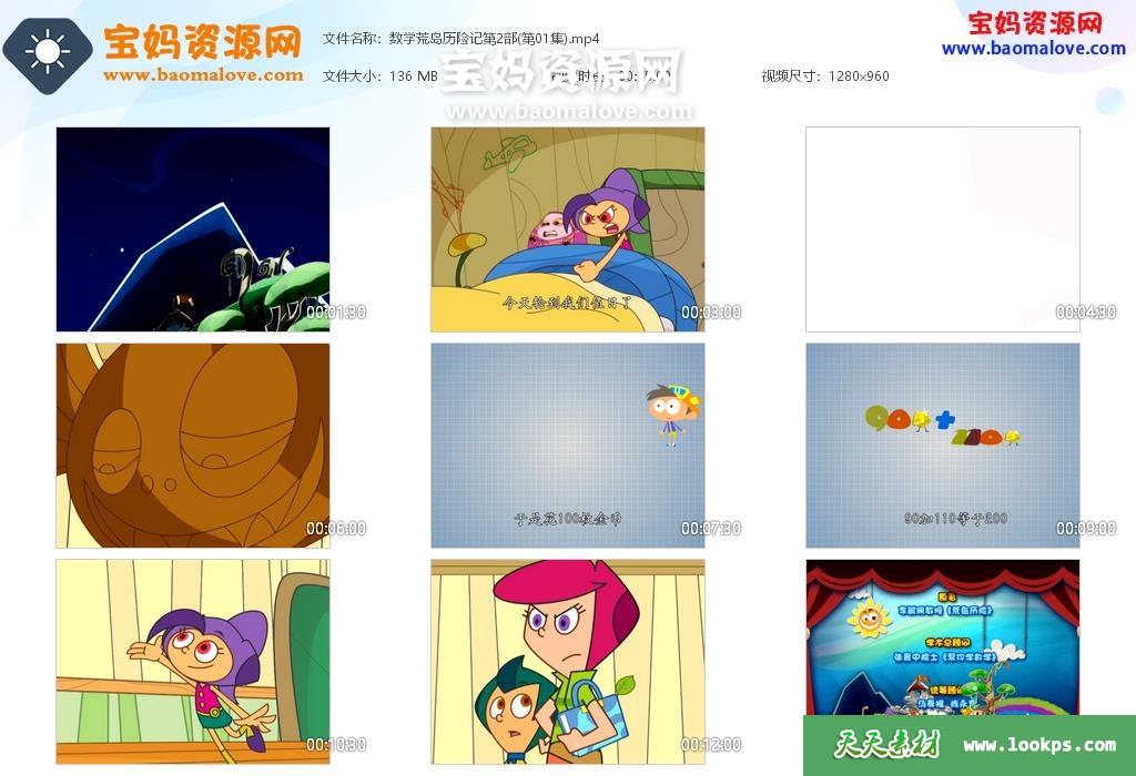 天天资源网收录的动画片《数学荒岛历险记》第二季,全部40集,国语发音,中文字幕;每集大小约139M,资源总大小5.6G,单集播放时长约15分钟,9600P高清MP4格式,可以在电视机或电脑、平板、IPAD、早教机、手机等各种设备播放,提供百度云网盘下载。