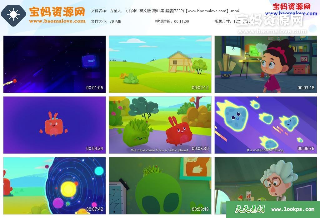 天天资源网收录的动画片《Cutie Cubies》方星人,向前冲英文版,全部26集,英语发音,英文字幕;每集大小约80M,资源总大小2.04G,单集播放时长约11分钟,720P高清MP4格式,可以在电视机或电脑、平板、IPAD、早教机、手机等各种设备播放,提供百度云网盘下载。