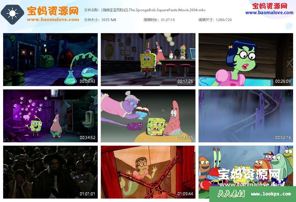天天资源网收录的动画电影《海绵宝宝历险记 The SpongeBob SquarePants Movie》,国英双语发音,内置中英文字幕(可以下载后使用播放器选择设置字幕或者关闭字幕);资源大小约2.96G,720P高清MKV视频格式,可以在电视机或电脑、平板、IPAD、早教机、手机等各种设备播放,提供百度云网盘下载。