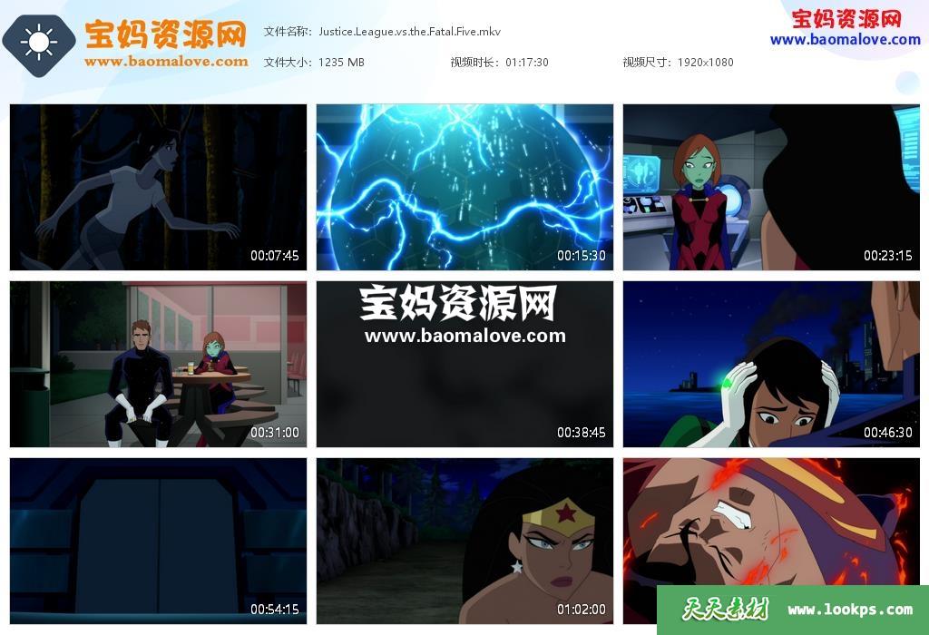 天天资源网收录的动画电影《正义联盟大战致命五人组 Justice League vs. The Fatal Five》,英语发音,内置英文字幕(可以下载后使用播放器设置字幕字体大小颜色或者切换关闭字幕);H265视频编码,资源大小约1.2G,1080P高清MKV视频格式,可以在电视机或电脑、平板、IPAD、早教机、手机等各种设备播放,提供百度云网盘下载。