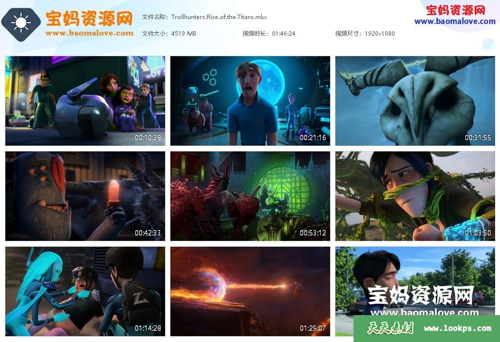 天天资源网收录的动画电影《巨怪猎人:泰坦的觉醒 Trollhunters: Rise of the Titans》,英语发音,内置中文、英文字幕(内置多国语言字幕,可以下载后使用播放器设置字幕字体大小颜色或者切换关闭字幕);资源大小约4.41G,1080P高清MKV视频格式,可以在电视机或电脑、平板、IPAD、早教机、手机等各种设备播放,提供百度云网盘下载。