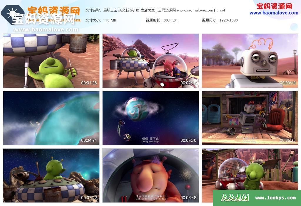 天天资源网收录的动画片《QPootle5》星球宝宝英文版,全部52集,英语发音,中英文字幕;资源总大小5.59G,单集播放时长约11分钟,1080P高清MP4视频格式,可以在电视机或电脑、平板、IPAD、早教机、手机等各种设备播放,提供百度云网盘下载。