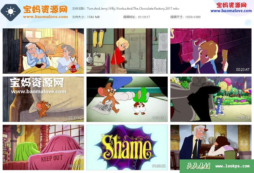 天天资源网收录的动画电影《猫和老鼠:查理和巧克力工厂 Tom and Jerry: Willy Wonka and the Chocolate Factory》,英语发音,内置英文字幕(可以下载后使用播放器设置字幕字体大小颜色或者切换关闭字幕);资源大小约1.5G,1080P高清MKV视频格式,可以在电视机或电脑、平板、IPAD、早教机、手机等各种设备播放,提供百度云网盘下载。