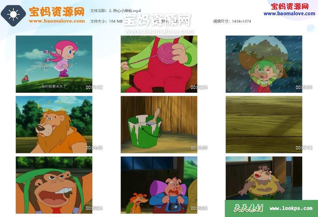 天天资源网收录的动画片《小神仙和小仙女》修复版,全部104集,国语发音,无字幕;资源总大小12.8G,单集播放时长约12分钟,1080P高清MP4视频格式,可以在电视机或电脑、平板、IPAD、早教机、手机等各种智能设备播放,提供百度云网盘下载。