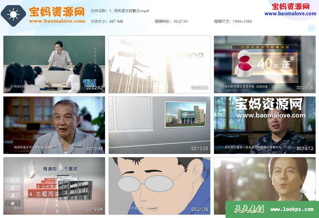 天天资源网收录的纪录片《我的人生我的课》,全部5集,国语发音,中文字幕;资源总大小约2.24G,单集播放时长约27分钟,1080P高清MP4视频格式,可以在电视机或电脑、平板、IPAD、早教机、手机等各种智能设备播放,提供百度云网盘下载。