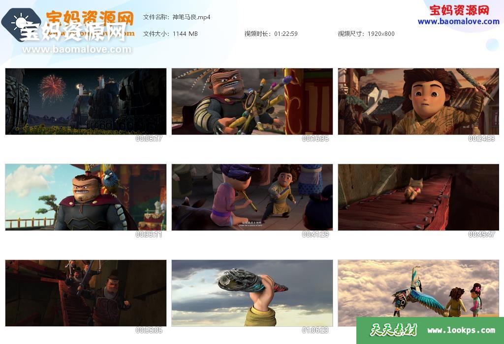 天天资源网收录的动画电影《神笔马良》,国语发音,中英文字幕;资源大小约1.11G,800P高清MP4视频格式,可以在电视机或电脑、平板、IPAD、早教机、手机等各种设备播放,提供百度云网盘下载。