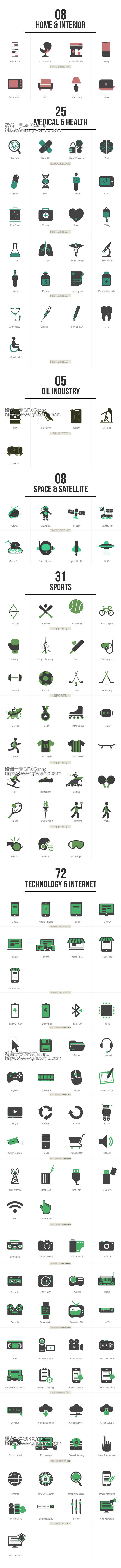 超过500个动态图标动画,所有的图标都是在AE中用图形层直接制作,颜色动态等都可以自定义修改,包含图片预览,查找使用简单