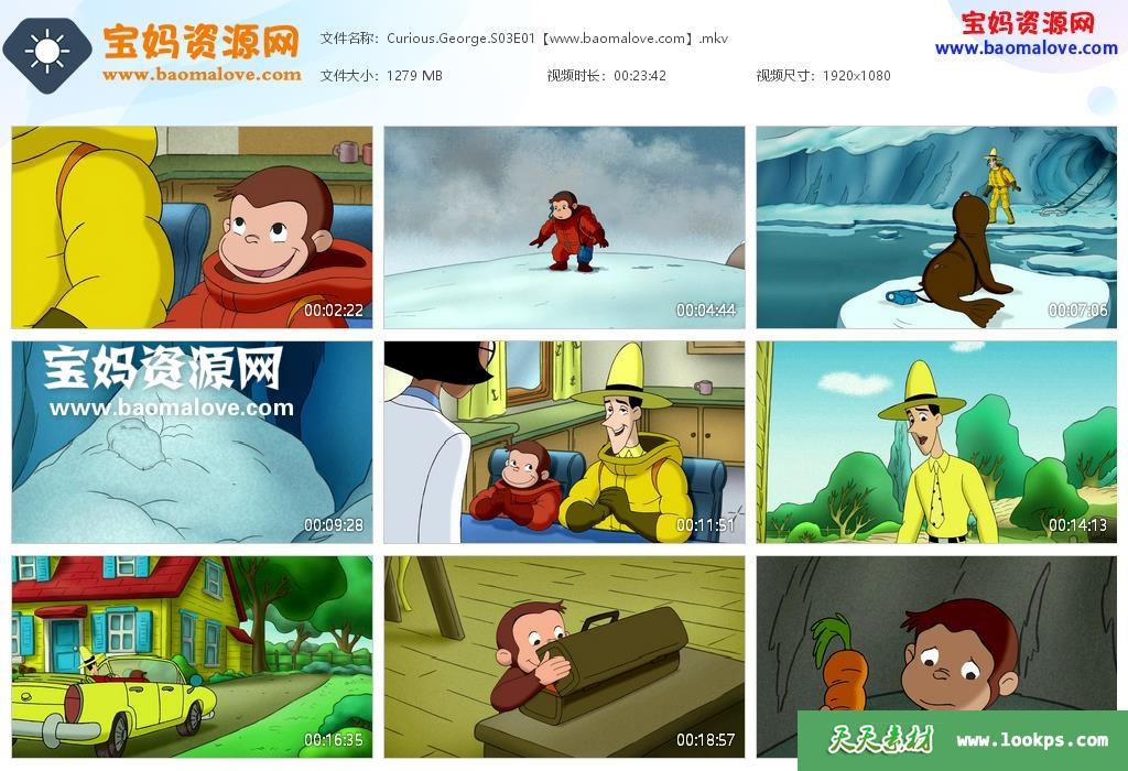 天天资源网收录的动画片《Curious George》好奇的乔治英文版 第三季,全部11集,英语发音,内置英文字幕(可以下载后使用播放器选择字幕或者切换关闭字幕);资源总大小约13.7G,单集播放时长约24分钟,1080P高清MKV视频格式,可以在电视机或电脑、平板、IPAD、早教机、手机等各种智能设备播放,提供百度云网盘下载。