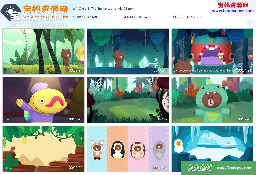 天天资源网收录的动画片《Jungle Brown》丛林布朗熊故事英文版,全部26集,英语发音,英文字幕;资源总大小约1.35G,单集播放时长约3~6分钟,1080P高清MP4视频格式,可以在电视机或电脑、平板、IPAD、早教机、手机等各种智能设备播放,提供百度云网盘下载。
