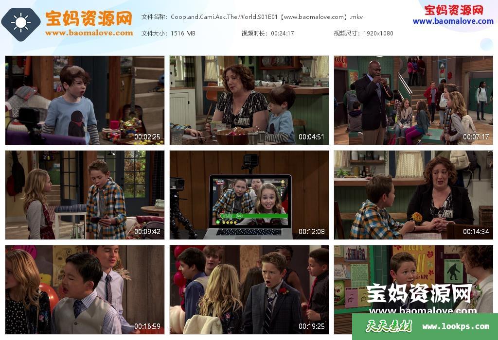 天天资源网收录的电视剧《Coop and Cami Ask the World》库普和卡米问世界英文版 第一季,全部21集,英语发音,内置英文字幕(可以下载后使用播放器选择设置字幕或者关闭字幕);资源总大小约29.7G,单集播放时长约23分钟,1080P高清MKV视频格式,可以在电视机或电脑、平板、IPAD、早教机、手机等各种智能设备播放,提供百度云网盘下载。