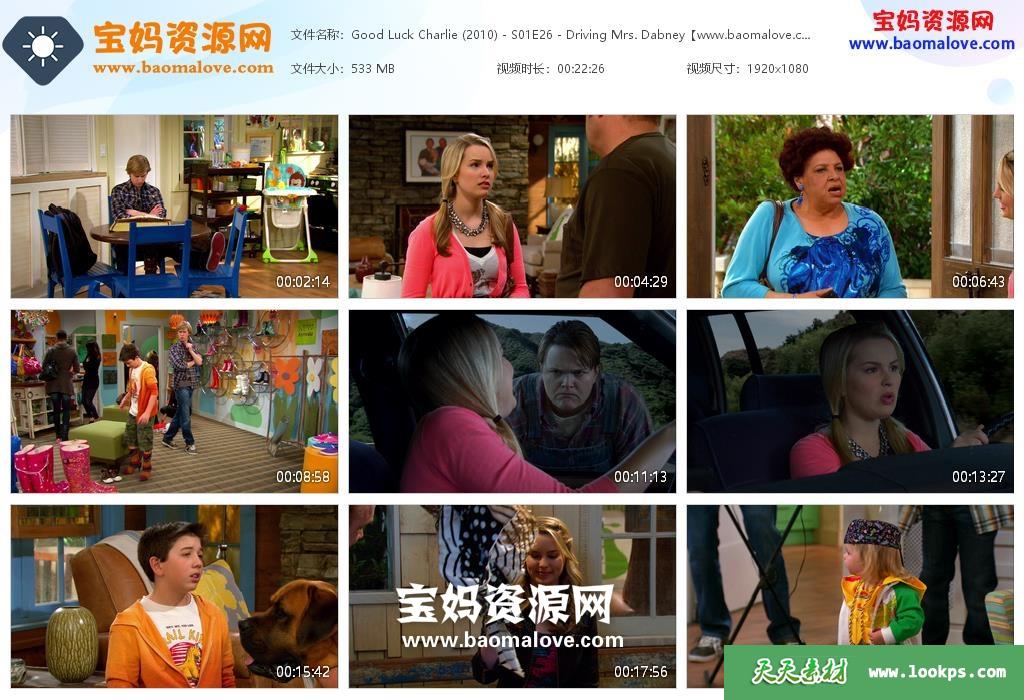天天资源网收录的电视剧《Good Luck Charlie》查莉成长日记英文版 第一季,全部26集,英语发音,内置英文字幕(可以下载后使用播放器选择设置字幕或者关闭字幕);资源总大小约13.7G,单集播放时长约23分钟,1080P高清MKV视频格式,可以在电视机或电脑、平板、IPAD、早教机、手机等各种智能设备播放,提供百度云网盘下载。