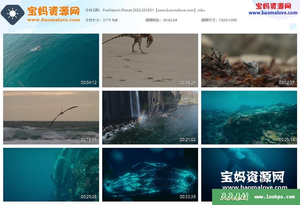 天天资源网收录的纪录片《史前星球 Prehistoric Planet》,全部5集,英语发音,内置英文字幕(内置多国语言字幕,简体中文,繁体中文,阿拉伯文,保加利亚文,捷克文,丹麦文,荷兰文,爱沙尼亚文,西班牙文,芬兰文,法文,希腊文,希伯来文,匈牙利文,印度尼西亚文,意大利文,日文,韩文,拉脱维亚文,马来文,挪威文,波兰文,葡萄牙文,俄文,瑞典文,泰米尔文,泰文,土耳其文,乌克兰文,越南文……可以下载后使用播放器选择字幕或者关闭字幕);资源总大小13.8G,单集播放时长约41分钟,1080P高清MKV视频格式,可以在电视机或电脑、平板、IPAD、早教机、手机等各种智能设备播放,提供百度云网盘下载。
