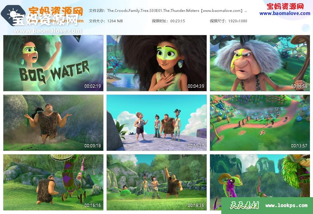 天天资源网收录的动画片《The Croods: Family Tree》疯狂原始人:家谱英文版 第一季,全部6集,英语发音,内置英文和西班牙文字幕(可以下载后使用播放器选择设置字幕或者关闭切换字幕);资源总大小7.45G,单集播放时长约23分钟,1080P高清MKV视频格式,可以在电视机或电脑、平板、IPAD、早教机、手机等各种智能设备播放,提供百度云网盘下载。