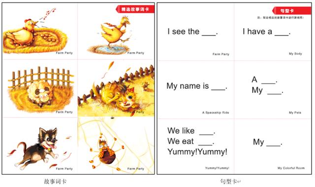 在《亲子导读》中,详细介绍了这套书的阅读方法,教大家如何带领孩子将故事中的词汇和句型运用到生活中。同时还设置了单词卡和句型卡,可以剪下来反复练习单词和句型,演绎绘本故事。学习一门语言,在日常生活中的应用非常重要。在科学的指导下,游戏式的互动和输出充满乐趣,这样的学习会形成良性循环,让孩子爱上英语。