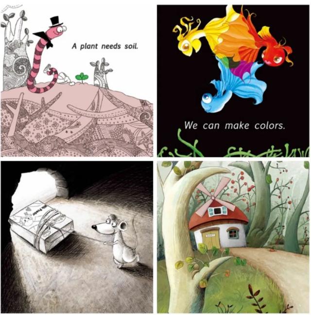 这套书画面风格多样,油画风、版画风、贴画风,每本书的画面都非常精美,可以让孩子在学英语的过程中,感受不同艺术风格的美。