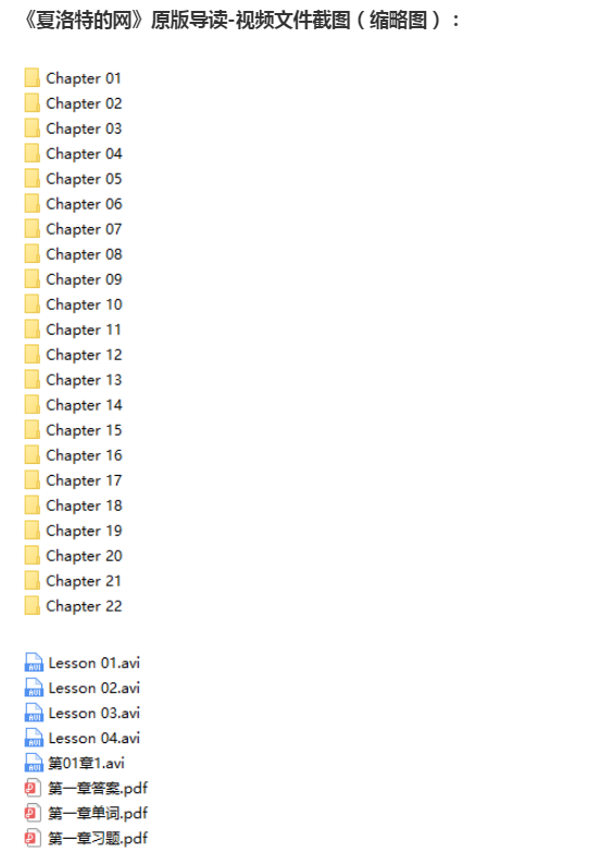 未经允许不得转载:天天素材网 » 《夏洛特的网》英文原版导读精讲视频课程全集(22章 含练习)